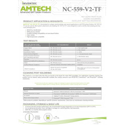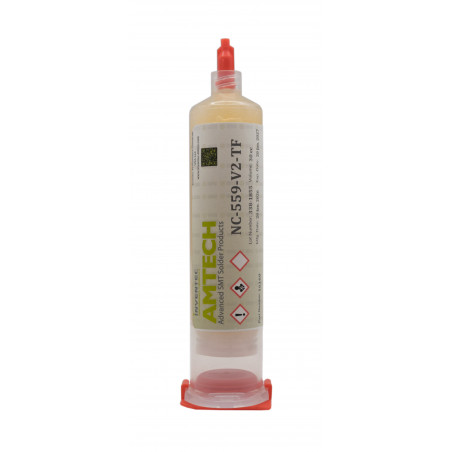 AMTECH NC‑559‑V2 Tacky No‑Clean Flux is a professional-grade solder paste ideal for electronics repair and rework. Its ROL0 low‑activity formula provides excellent wetting and tackiness, allowing precise soldering on dense PCBs, BGAs, and components. It leaves clear, non-corrosive residue, reducing defects and minimizing post-solder cleaning. Best suited for tin/lead alloys such as 63Sn/37Pb, 62Sn/36Pb/2Ag, 60Sn/40Pb, and 43Sn/43Pb/14Bi, making it perfect for leaded solder repairs.
